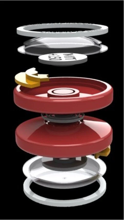 The yoyo consisted of 5 produced parts - 4 injection molded parts and a theromoformed cap. The yoyo body is designed and fitted with an o-ring and bearing for improved yoyo performance.