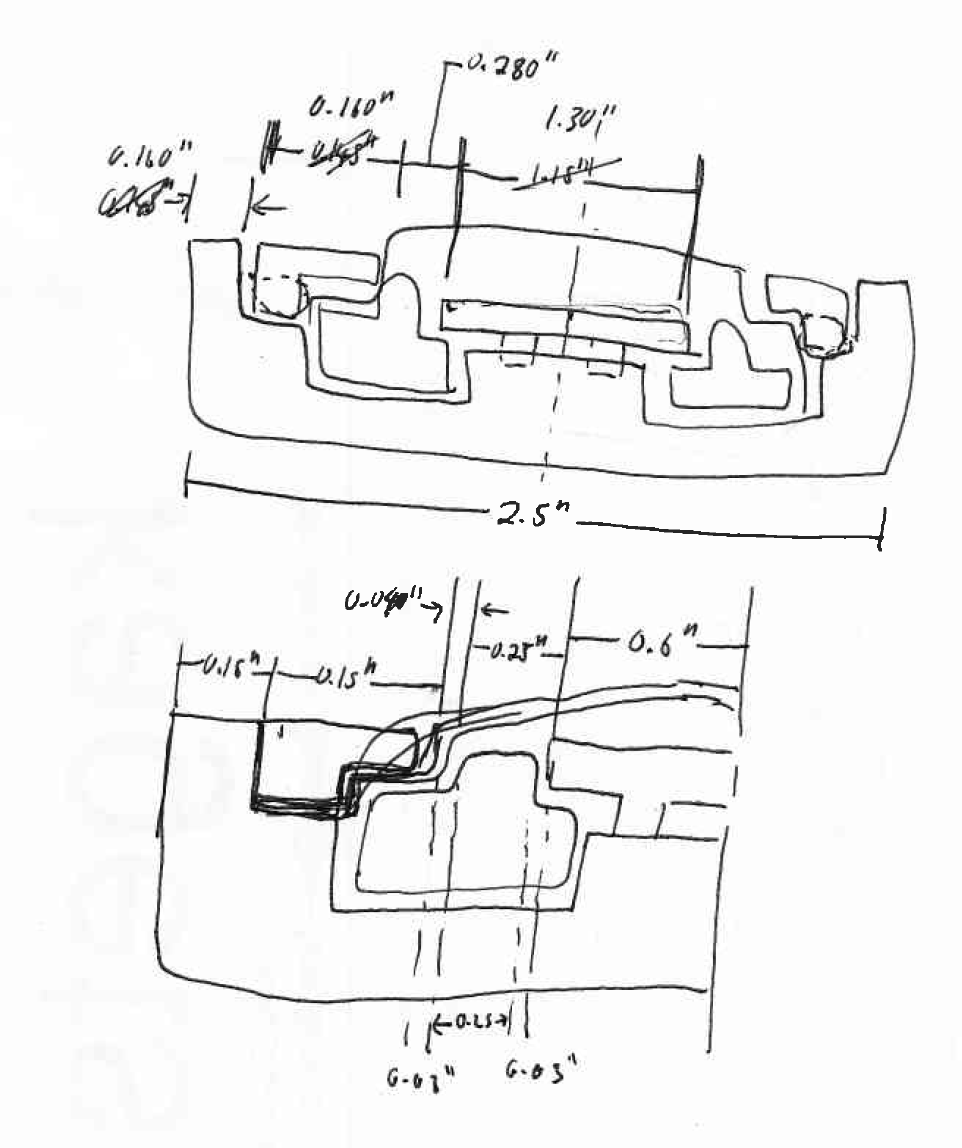 Translated CAD model of part into mold design in Mastercam. Modified key dimensions to account for the injection molding process, including shrinkage and ejection.
