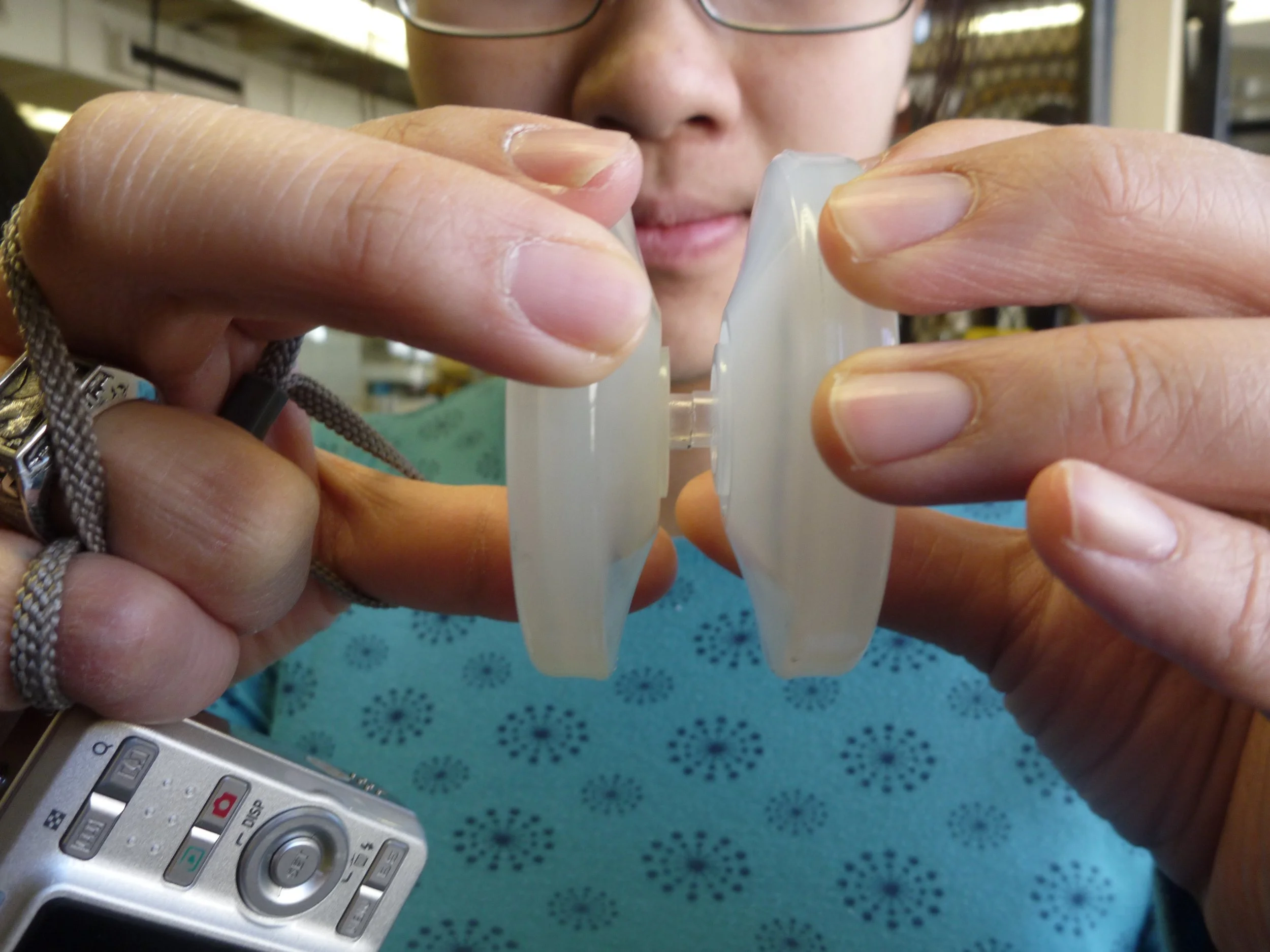 Thermoformed Cap, which fits inside rim of body. It is held in place by a injection molded ring (not shown here). The ring was designed and produced by a teammate.